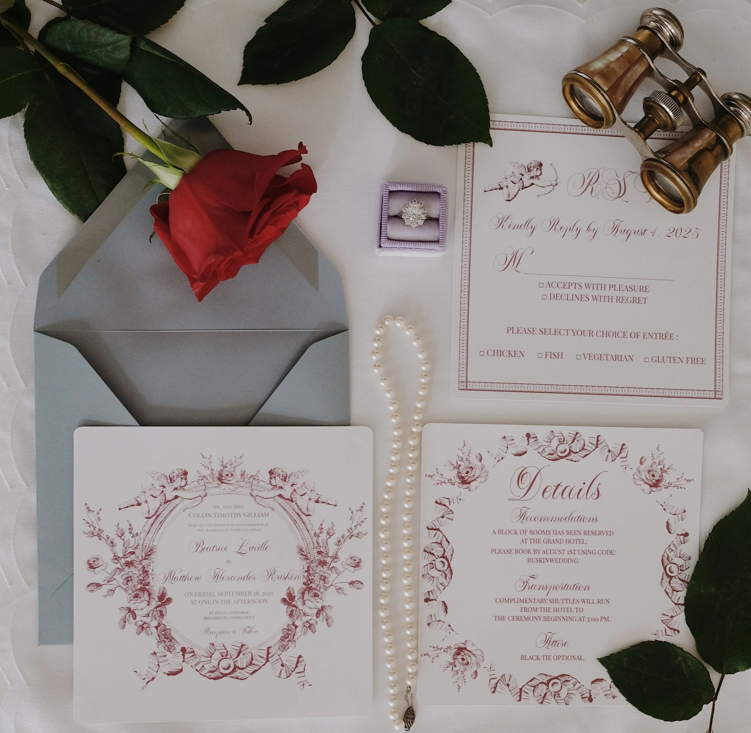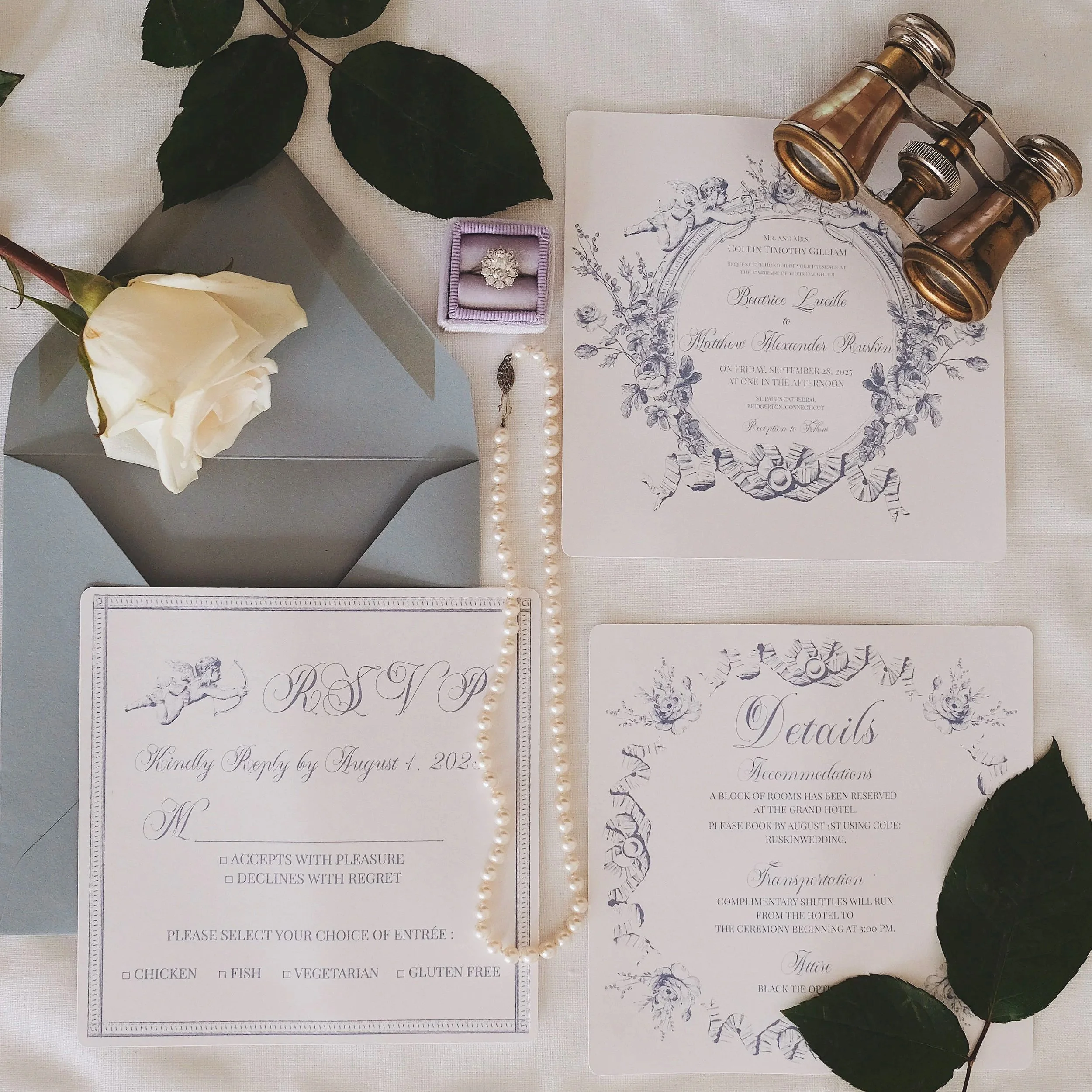 Our Collection Categories: Select a Category les menus sur mesure les faire-part la papeterie les menus sur mesure | les faire-part | The Theatrical Suite The Matcha Suite The Rosette Table Number Collection The Cupid Suite in Burgundy The Cupid Suite in French Blue The Wedgewood Suite in Green The Wedgewood Suite in Pink The Wedgewood Suite in Blue The Wildflower Suite The Lapis Menu The Malachite Menu The Pearl in Shimmer Shell The Pearl in Shimmer Suite The Pearl in Ocean Suite The Hydrangea Suite The Blush Garden Suite